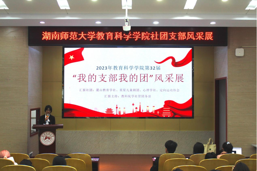 (通讯员 刘燕 杨雨桐)11月18日下午,教育科学开元(中国)一站式服务平台2023年社团支部风采展“我的支部我的团”在101学术报告厅举行。此次活动由教科院学社管团务部主持,四个社团的部分会员参加。麓山教育学社、星星儿童剧团、心理学社、定向运动协会四个社团轮流进行风采展示。