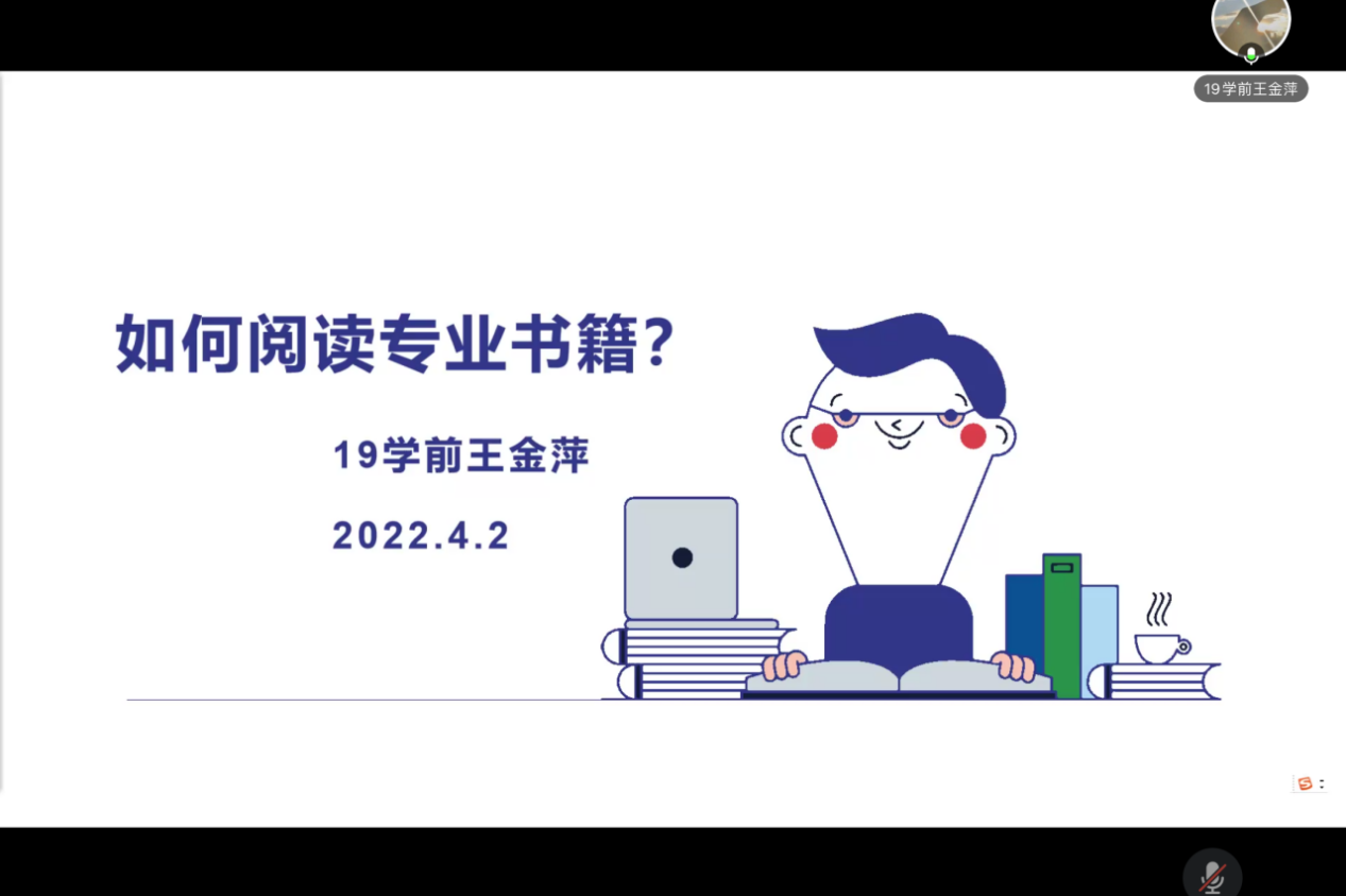 (通讯员 谢如 卢勇)4月2日晚,教科院团委青创部于线上腾讯会议开展本学年第五期精勤讲堂。19学前王金萍担任活动主讲人,教科院部分本科生参与此次讲座。讲座由青创部干事罗紫怡主持。