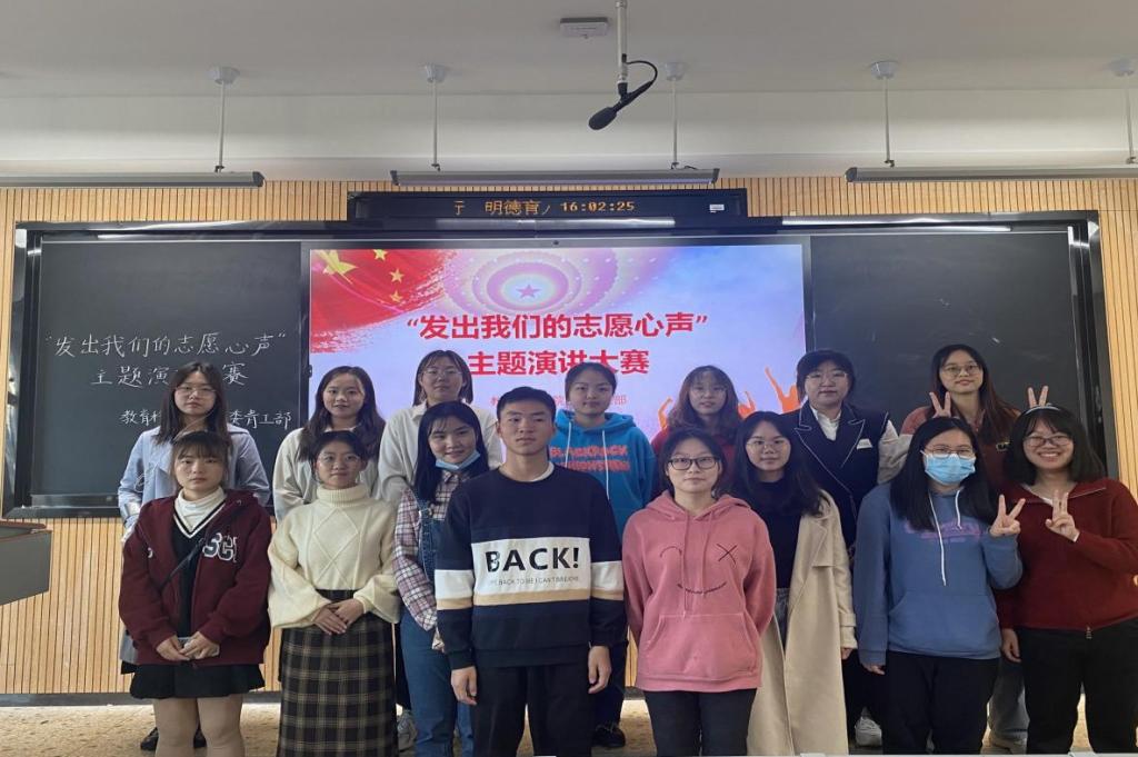 (通讯员 王艺橙 李晶婷)11月14号下午,教育科学开元(中国)一站式服务平台团委青年志愿者工作部在教科院315教室举办了“发出我们的志愿心声”主题演讲比赛。教科院团委工作负责人谭梦、20级辅导员丁文珺因事未能莅临现场,采取观看现场直播的方式为选手打分,教科院团委青工部负责人王艺橙于活动现场担任评委。此次演讲大赛由青工部志愿者卢柯宇、刘佳雨担任主持人,共有13名参赛选手参与此次比赛。