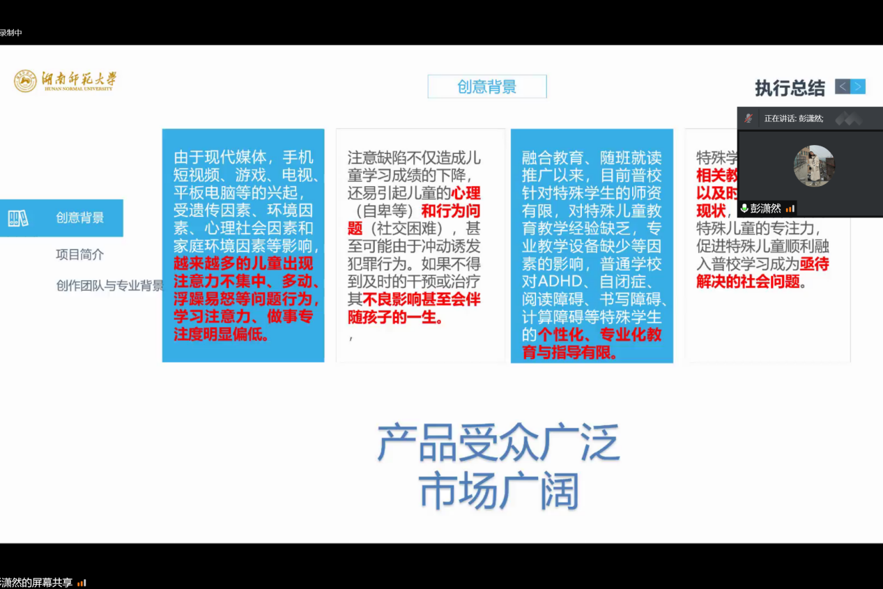 此次比赛共有4支参赛队伍,答辩时各项目负责人分别进行作品介绍。黄靓昕从项目性质及组办形式出发,围绕项目的可行性、效益性、立足点、发展前景等多个方面对每份作品进行点评,并结合自身作为倾听者网络工作室法人的创业经历指出作品的欠缺与不足,给予参赛同学们翔实、可行的建议。谭梦指出,大学生创新创业的构想应源于自己对生活和实践的思考,分析此类创意与实践在市场需求中是否已处于饱和状态,避免同质化的竞争。总结环节中,庞瑞宇对选手们积极参与“蓝田杯”创新创业大赛给予了充分肯定,鼓励同学们敏锐把握蓝海,抓住机遇,勇于施行。