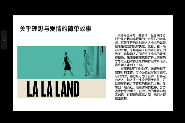 在此次分享会中,蒋璧如围绕影片《爱乐之城》,向大家介绍影片中歌舞形式的亮点,而后又从剧情出发,引申出对“爱情与理想的追求”的主题。刘永恒则结合当下疫情防控、同学们就地隔离的背景,从自己在隔离期间身边发生的趣事和小男孩钉钉子的故事着手,向大家分享了如何克服不良情绪的方法。李佳鑫从强军的视角,引用翔实史料,综合分析了北洋水师自成军以至最终覆灭的历史脉络,得出了“决定战争成败的根本因素在人,而不是武器”的结论。