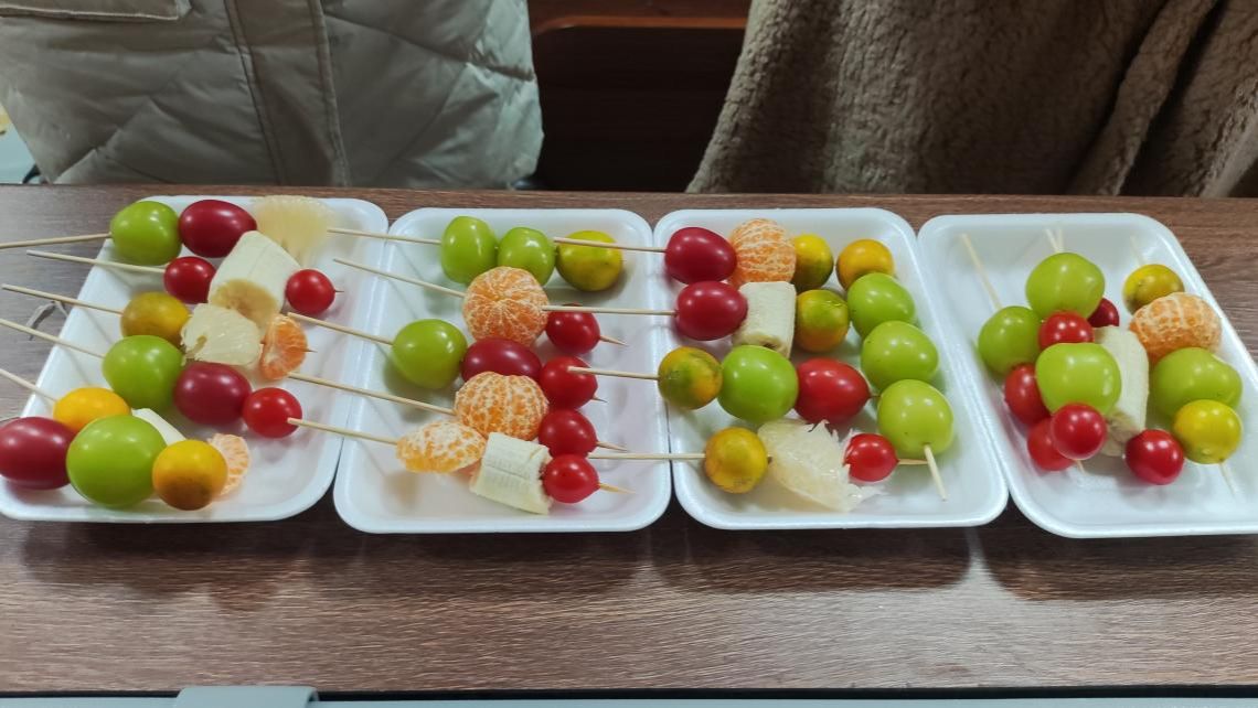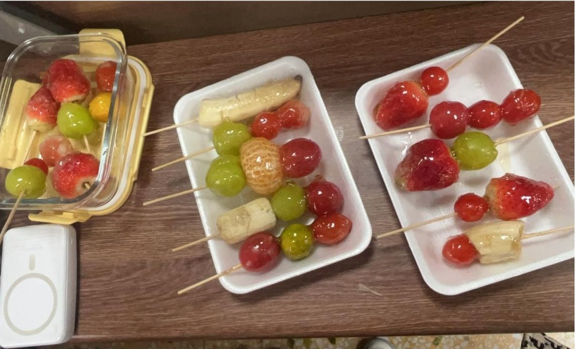 活动伊始,李欣雨简要介绍了活动制作流程,并强调卫生和安全的重要性。为保证活动的有序进行,李欣雨对全班同学进行了分组,每组分配一定的材料和工具,随后便开始串水果、熬糖浆等制作步骤。活动最后,各小组代表积极展示本组制作的“冰糖葫芦”,并分享制作过程中的学习收获和感悟。