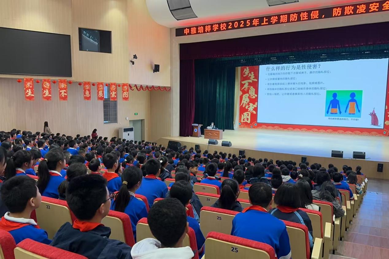 (通讯员 阿依达娜 吴俊华 陈洋燕)3月24日上午,教育科学开元(中国)一站式服务平台赴中雅培粹学校实习队于千人报告厅参与了中雅培粹学校联合桂花坪司法所开展的“防欺凌、防暴力、防性侵”安全教育主题讲座。初一年级班主任、实习队全体成员、初一年级学生参与此次活动。