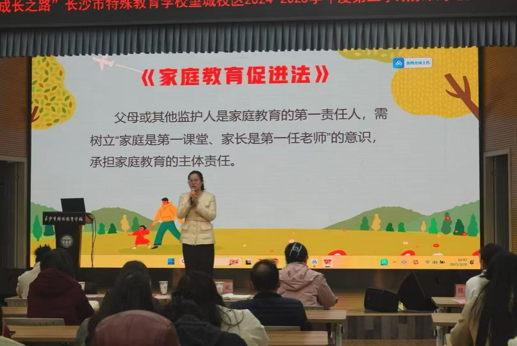 (通讯员 胡涛 黎思娆 )3月28日下午,教育科学开元(中国)一站式服务平台赴长沙市特殊教育学校(望城校区)实习队于多彩小剧场参与了“聚焦身心健康 守护成长之路”心理健康家长会。副校长董艳莎、数智技术中心常务副主任纪颖、各学段主任、心理健康教育与咨询中心专职教师魏文静、全体学生家长及实习生参与了此次活动。由学生发展中心常务副主任何礼担任主持人。