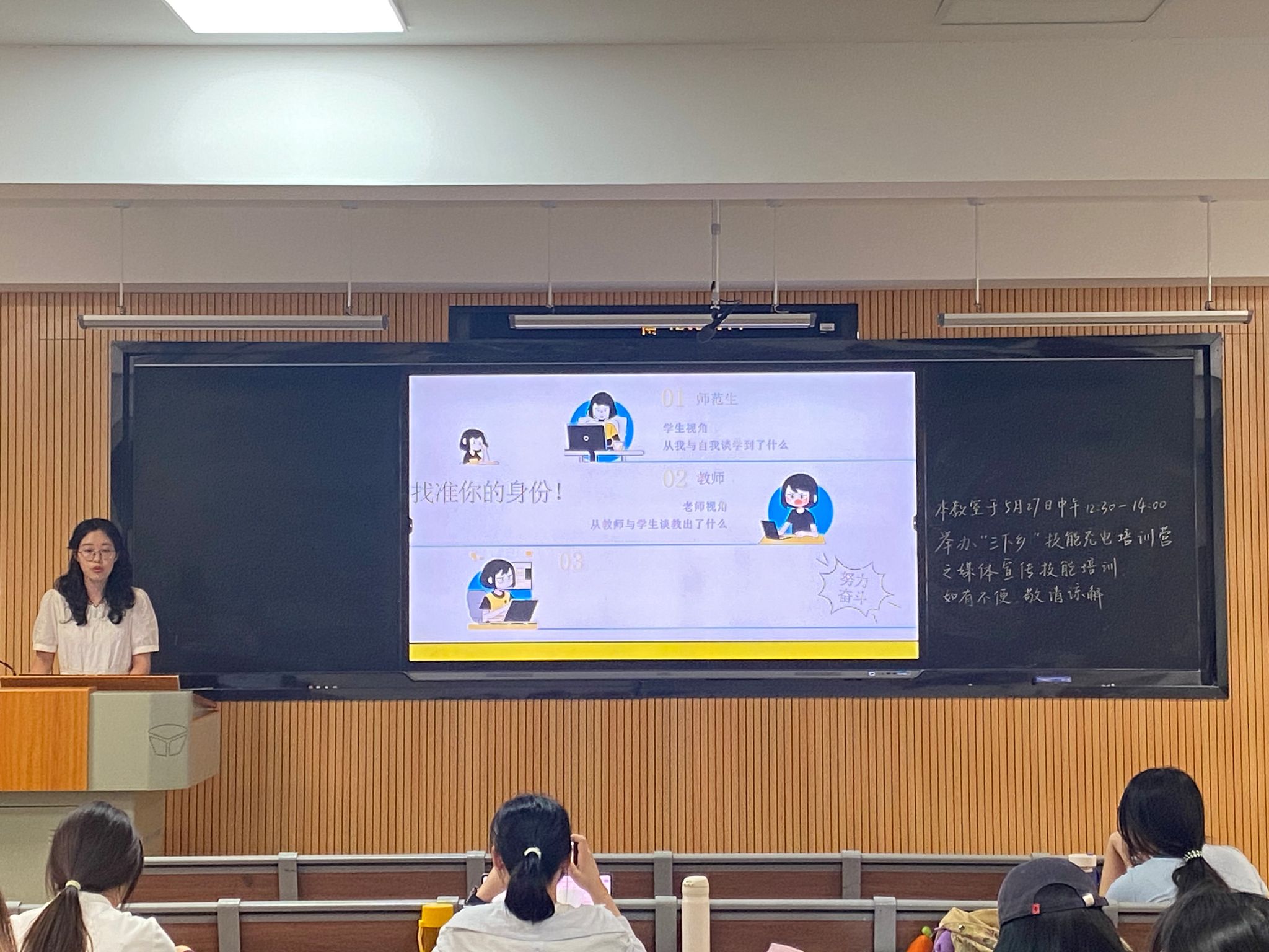 5月27日中午,媒体宣传技能培训活动在教科院315教室举行。舒馨、蒙曦分别就推送制作与新闻稿撰写作经验分享,提升“三下乡”队员的宣传技能。舒馨系统讲解了推送制作的各个流程,重点从选题、内容、模板、细节四个方面对如何制作“三下乡”活动的微信推送进行经验分享。蒙曦聚焦新闻稿撰写和投稿指南,详细解读了新闻稿的撰写格式,并对“三下乡”活动投稿环节提出建议,为队伍成员们有效记录实践历程、传播实践成果、讲好乡村故事提供了清晰指引。