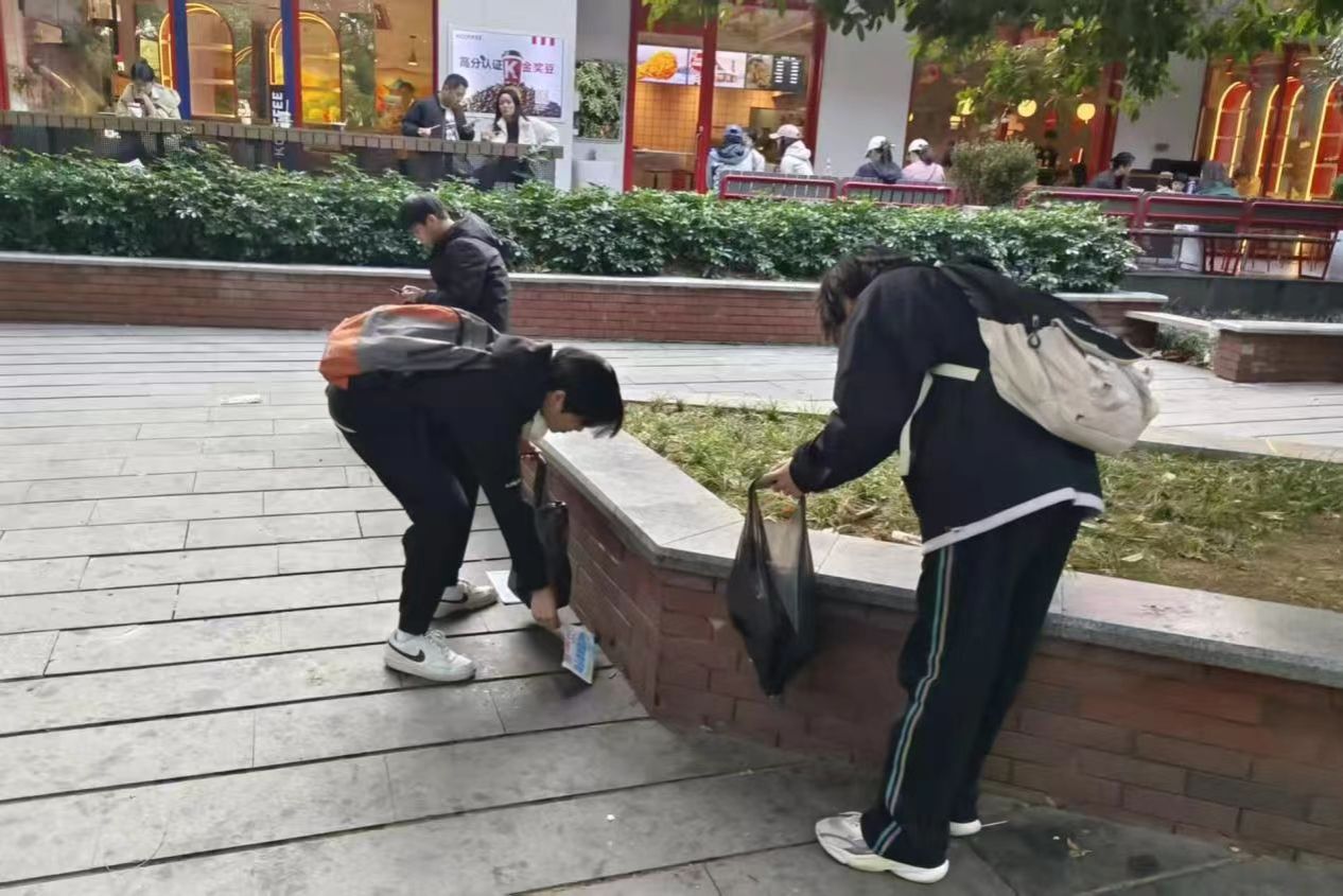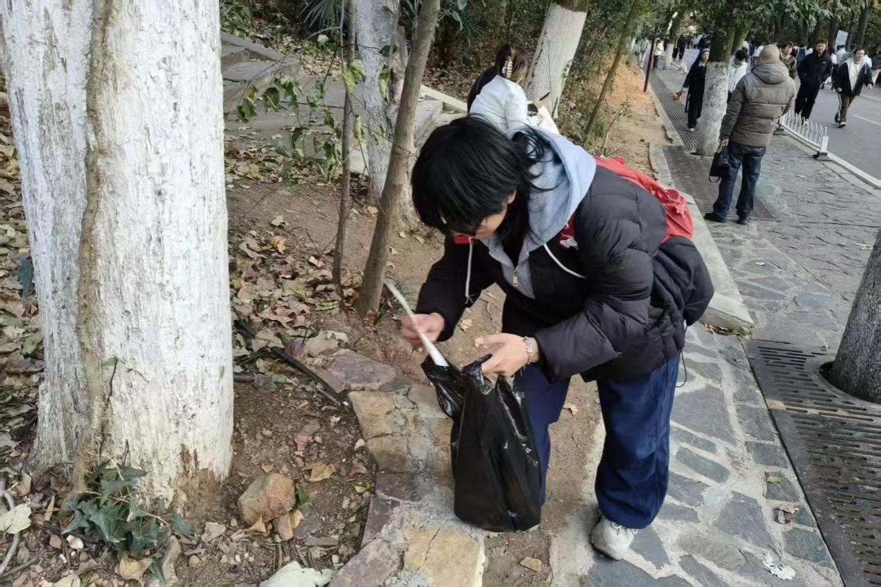 青年志愿者化身“环保卫士”,沿岳麓山景区步道有序开展垃圾捡拾工作。他们弯腰俯身,细致清理草丛中、石阶旁、街道边的塑料瓶、纸屑等各类废弃物,分类打包后送至指定回收点。同时,针对景区内个别游客的不文明行为,同学们以温和耐心的态度进行文明劝导,主动向市民游客宣传环保理念,倡导大家共同守护岳麓山的生态环境与人文风貌,呼吁每一位来访者争做文明旅游的践行者与推动者。
