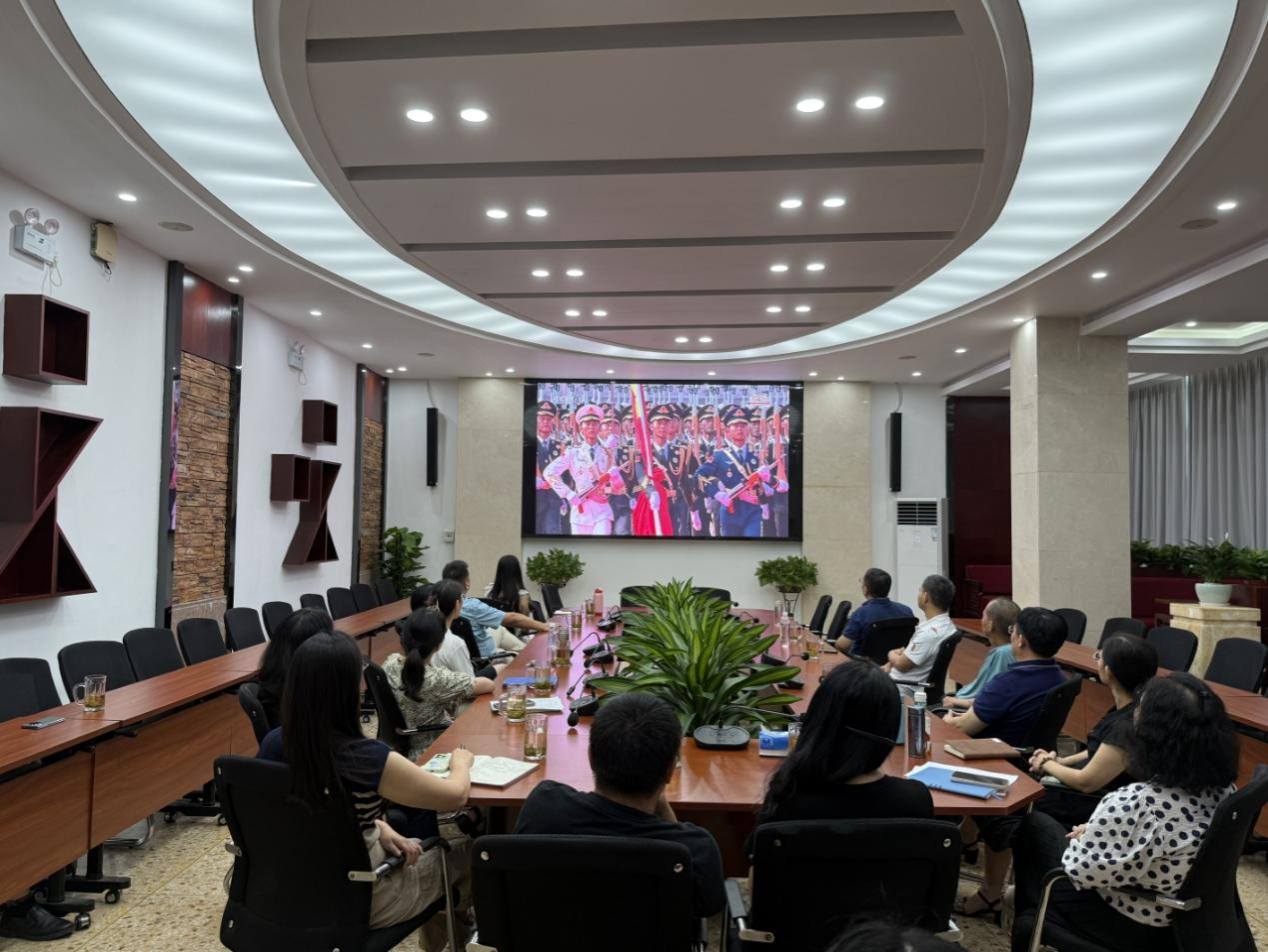 全体师生认真聆听了中共中央总书记、国家主席、中央军委主席习近平在纪念大会上发表的重要讲话,并观看了阅兵仪式。此次阅兵充分展现了新时代国防和军队建设的辉煌成就,彰显出大国风采与强军力量。观看现场气氛热烈,师生们神情专注。