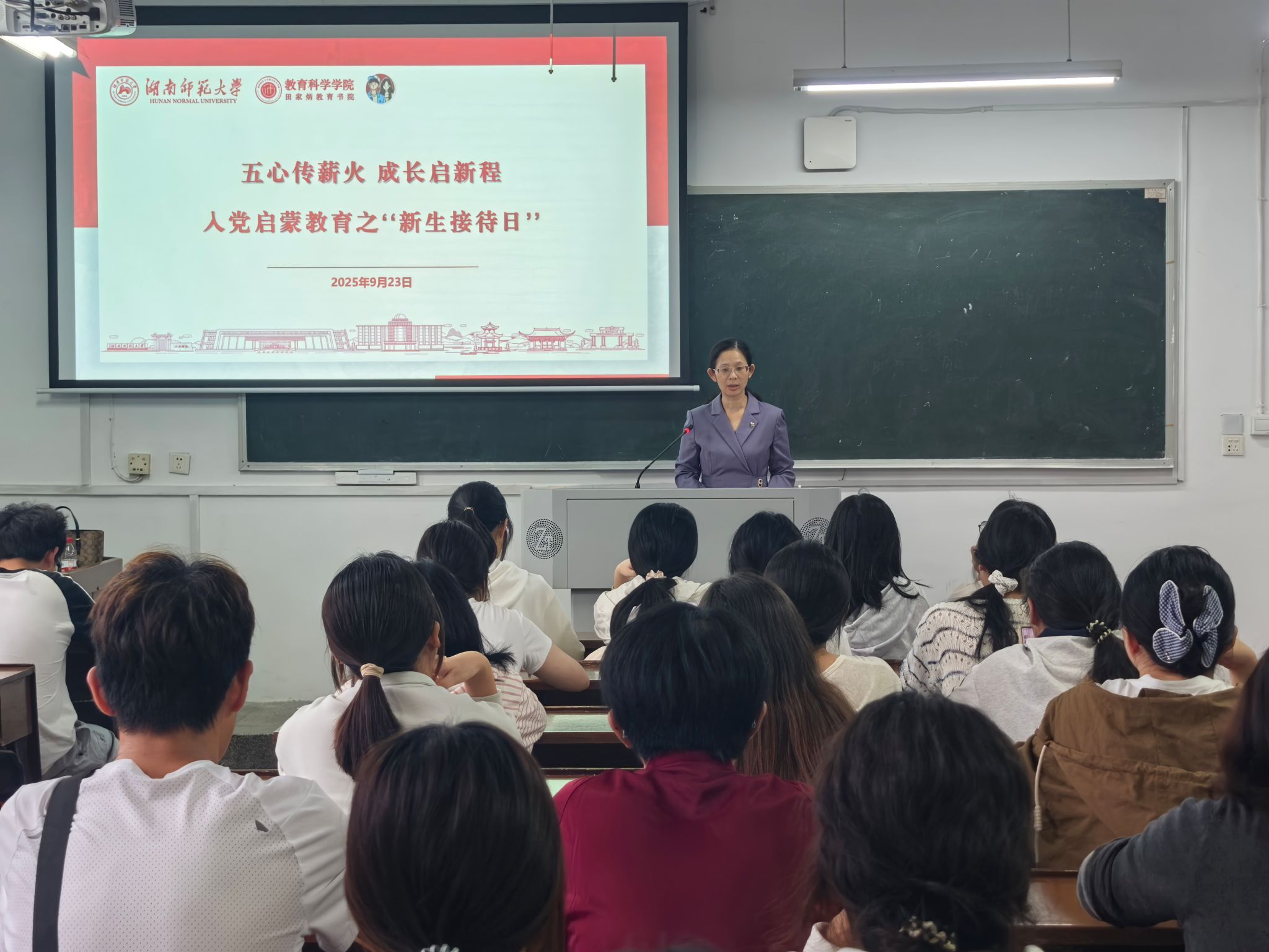 下午的活动分场同步进行。在办公楼300会议室,向发意书记、林峻副书记与新生代表亲切座谈,耐心倾听同学们入学初期的学业与生活困惑,并予以细致解答,现场交流融洽。与此同时,王赛波老师在另一会场教学楼203室主讲入党启蒙教育,为新生筑牢信仰之基。