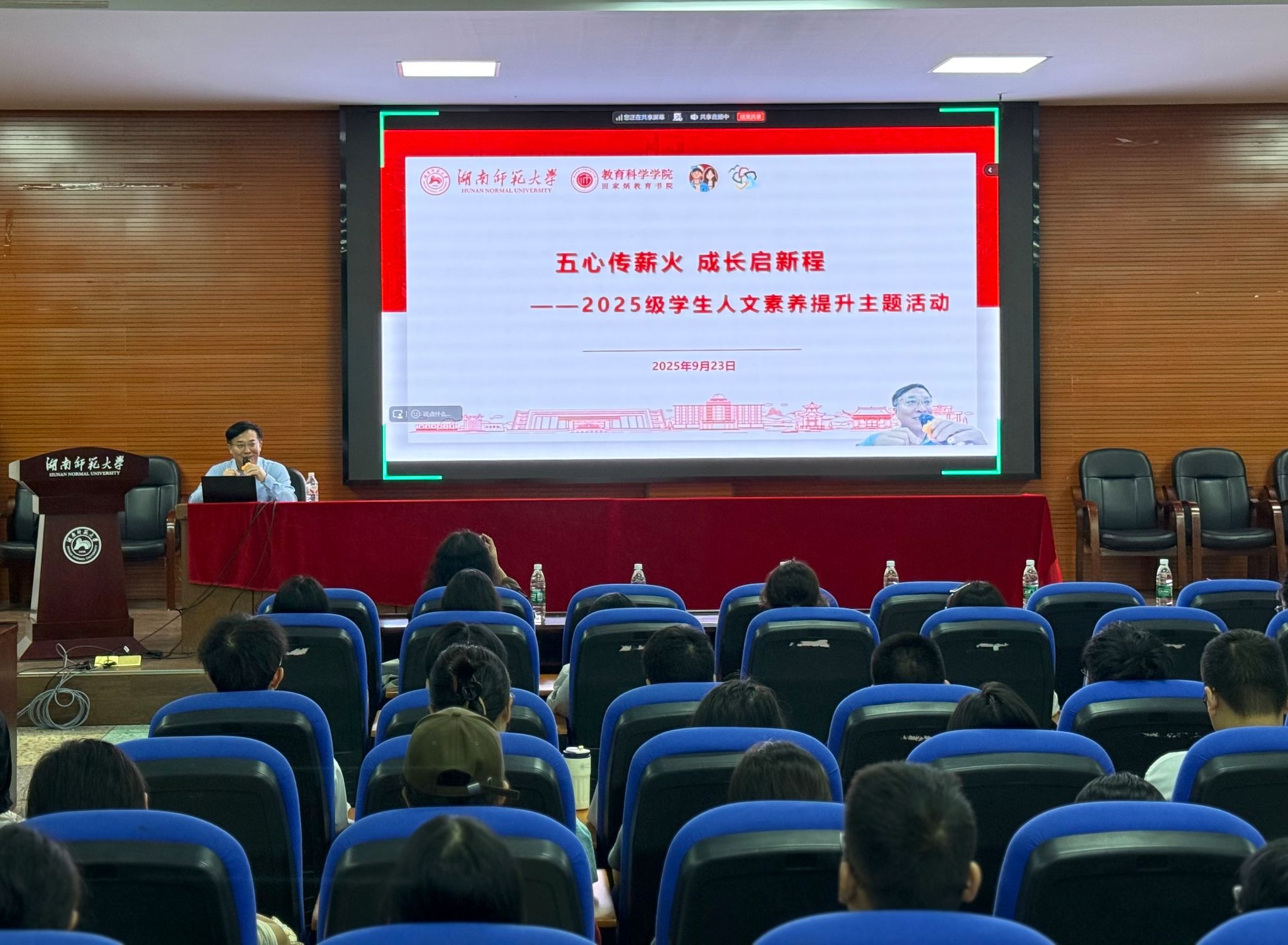 晚上6:30,向发意书记以“解读大学”为主题,为全体新生讲授人文素养提升第一讲。他从“大学是什么”、“大学的发展历程”讲到“一流大学的内涵”与“大学文化的底蕴”,最终落脚于“如何读好大学”,全程讲授既有理论高度,又贴近学生实际,生动诠释了大学精神、学习方法与成长路径。讲座中互动频频,掌声不断,反响热烈。