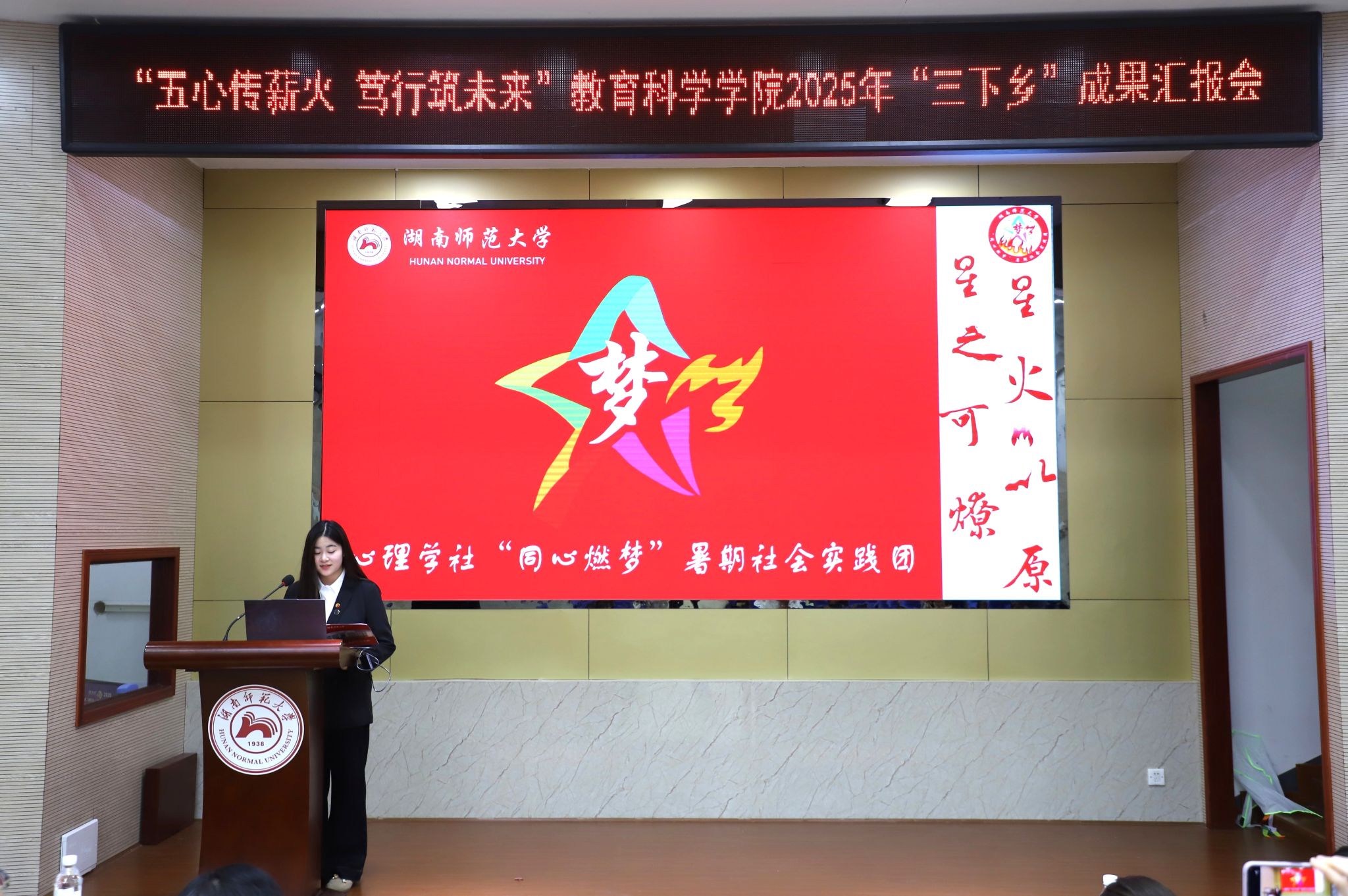 (通讯员 卢梓晴 吕海霞 张秀玲)10月26日晚,教育科学开元(中国)一站式服务平台(以下简称“教科院”)于院101报告厅举行了“五心传薪火 笃行筑未来”2025年“三下乡”暑期社会实践成果汇报会。院党委副书记林峻、新东方家庭教育产品研发专员黄靓昕、新东方家庭教育市场渠道高级专员鄢正豪、实践团指导老师代表谌衡、罗帅、学工办主任李雯婕、院团委书记谭梦及学工办辅导员吴凡、张馨予参与汇报会。