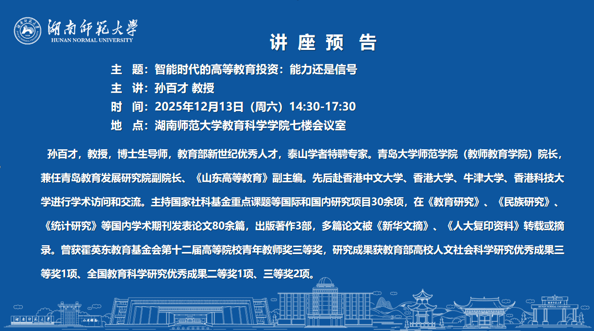 “教科大讲堂”第46讲:智能时代的高等教育投资:能力还是信号