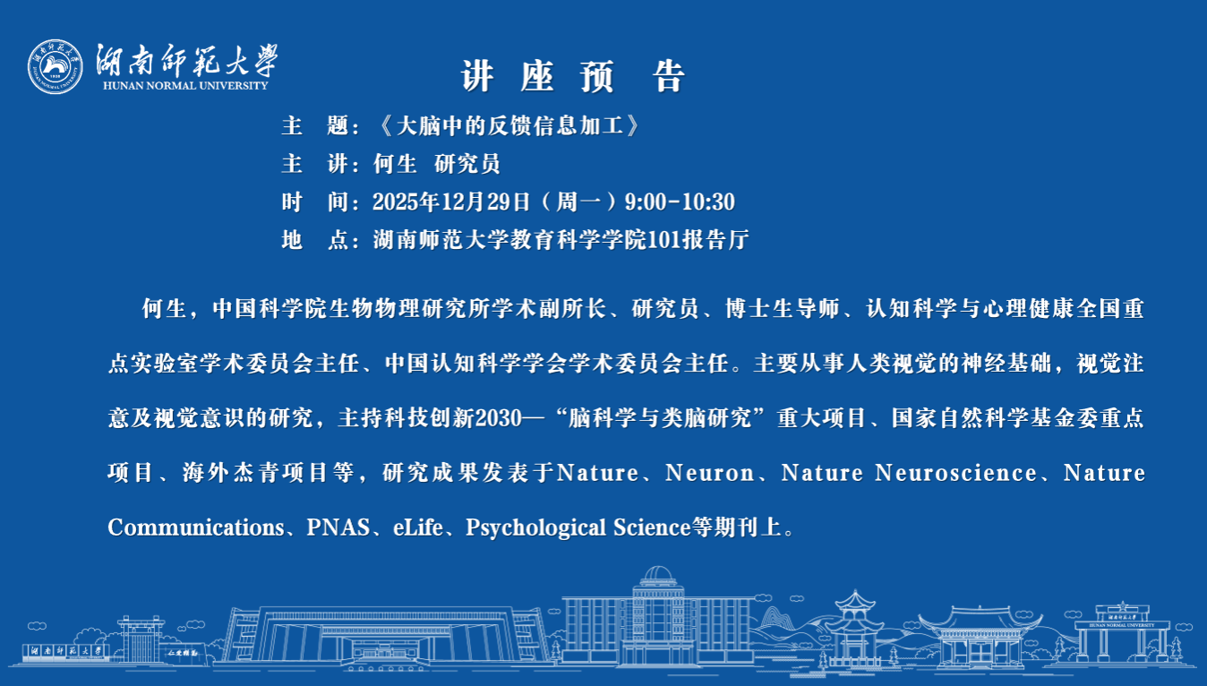 “教科大讲堂”第53讲:《大脑中的反馈信息加工》